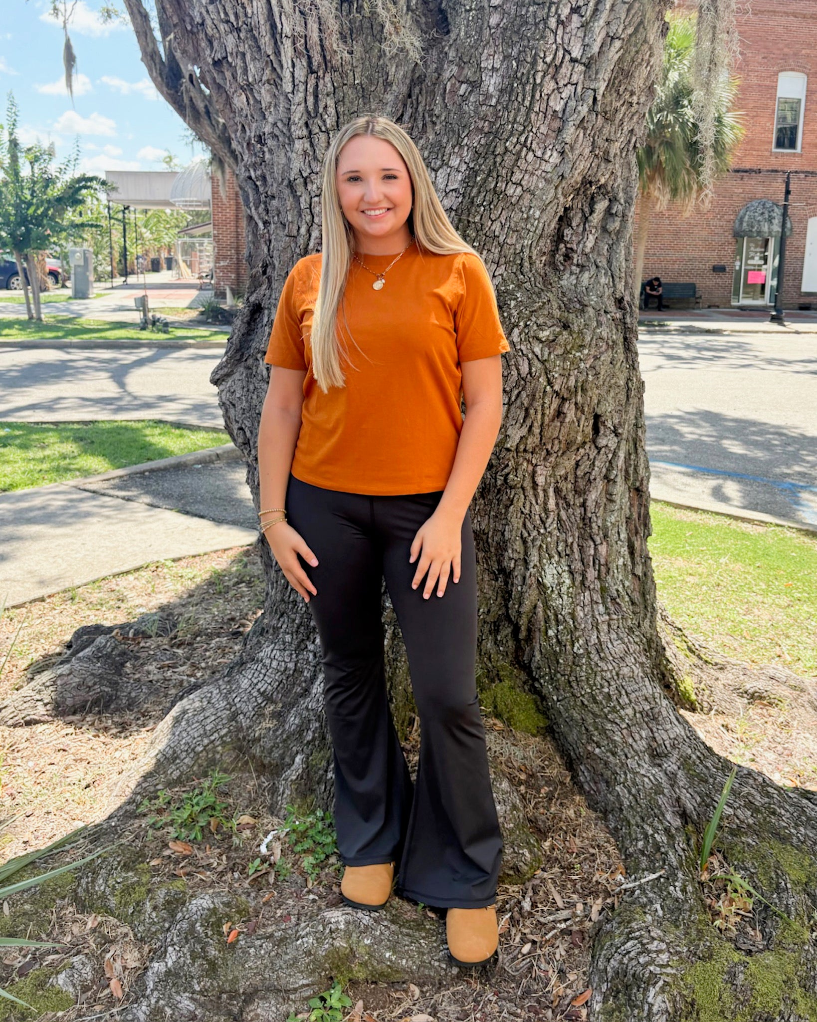 This timeless favorite is crafted from soft pima cotton with a vibrant pigment-dyed finish. It boasts a relaxed boxy shape and a comfy ribbed neckline. Kelsey, standing 5'9" and wearing a size small, shows off this playful essential made of 95% pima cotton and 5% spandex.