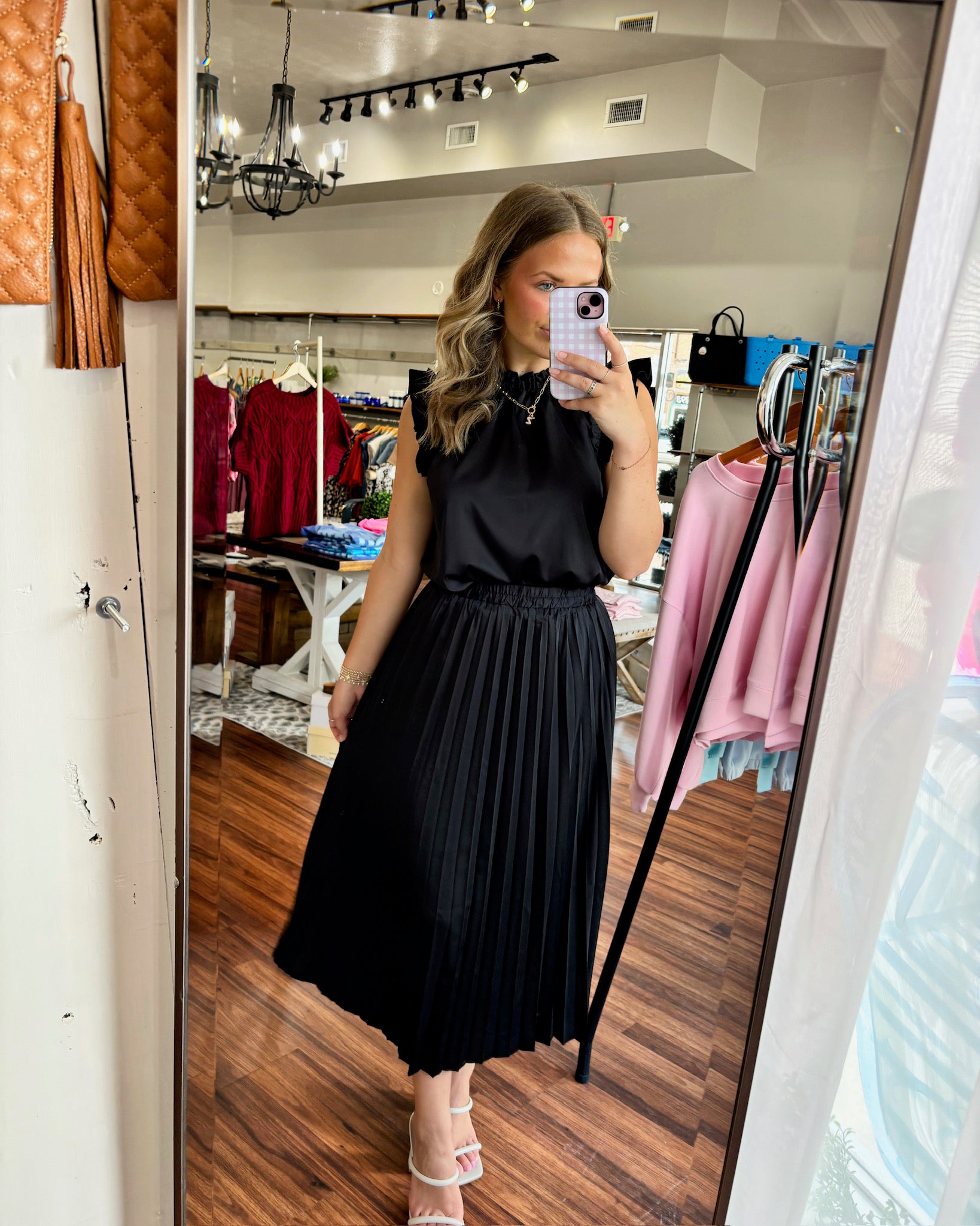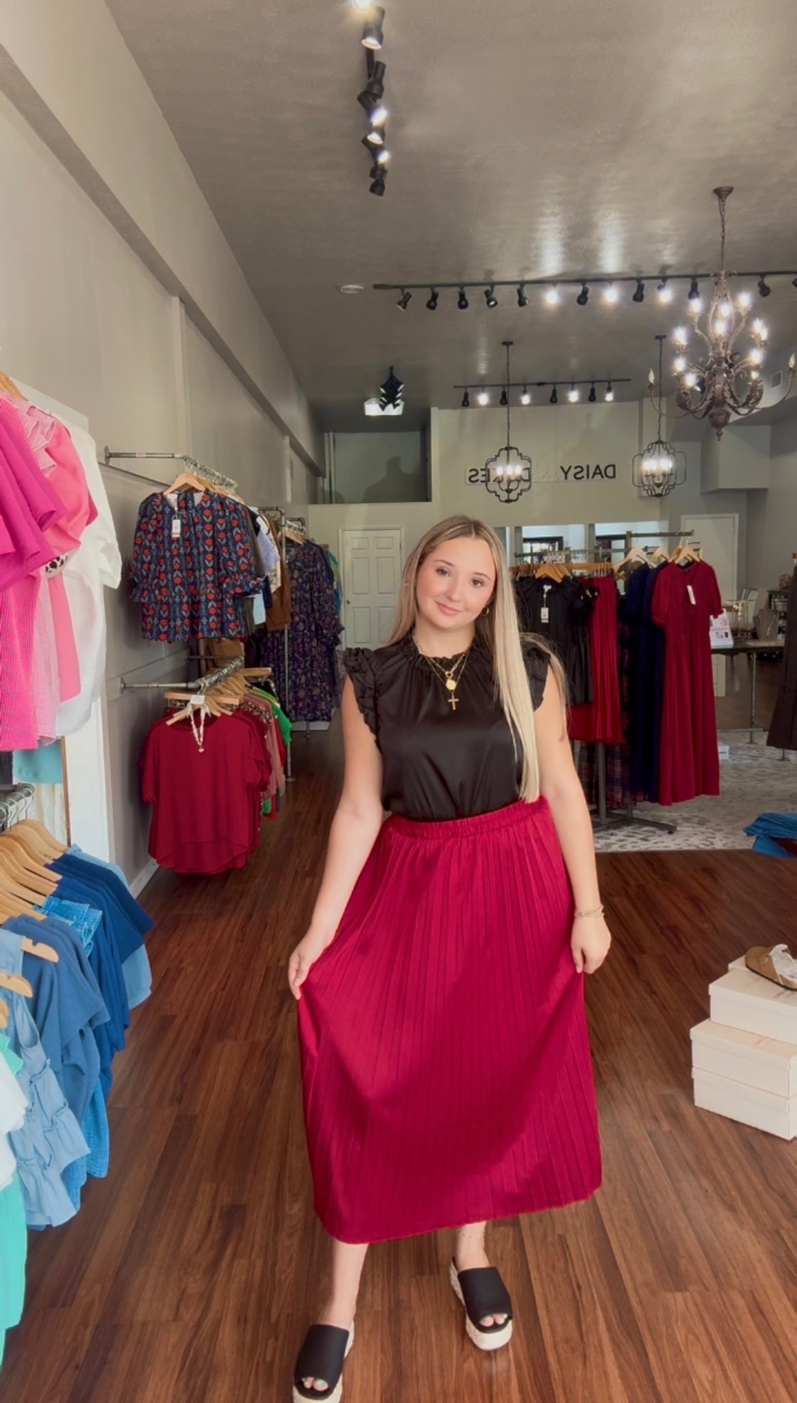 The Townes Top is crafted from luxurious poly satin, offering a silky smooth feel and a subtle sheen that elevates any outfit. Its elegant design features a gathered ruffle neckline that adds a touch of femininity and sophistication, while the flutter ruffle sleeves provide a playful and airy look. With a length of approximately 25 inches from shoulder to hem on a size small, this top offers a flattering fit that pairs beautifully with both casual and formal attire. Available in three sizes—small, medium, and large—this top is made from a blend of 96% polyester and 4% spandex, ensuring a comfortable stretch and a perfect fit. Ideal for any occasion, the Townes Top is a versatile addition to your wardrobe, promising style and comfort in equal measure.
