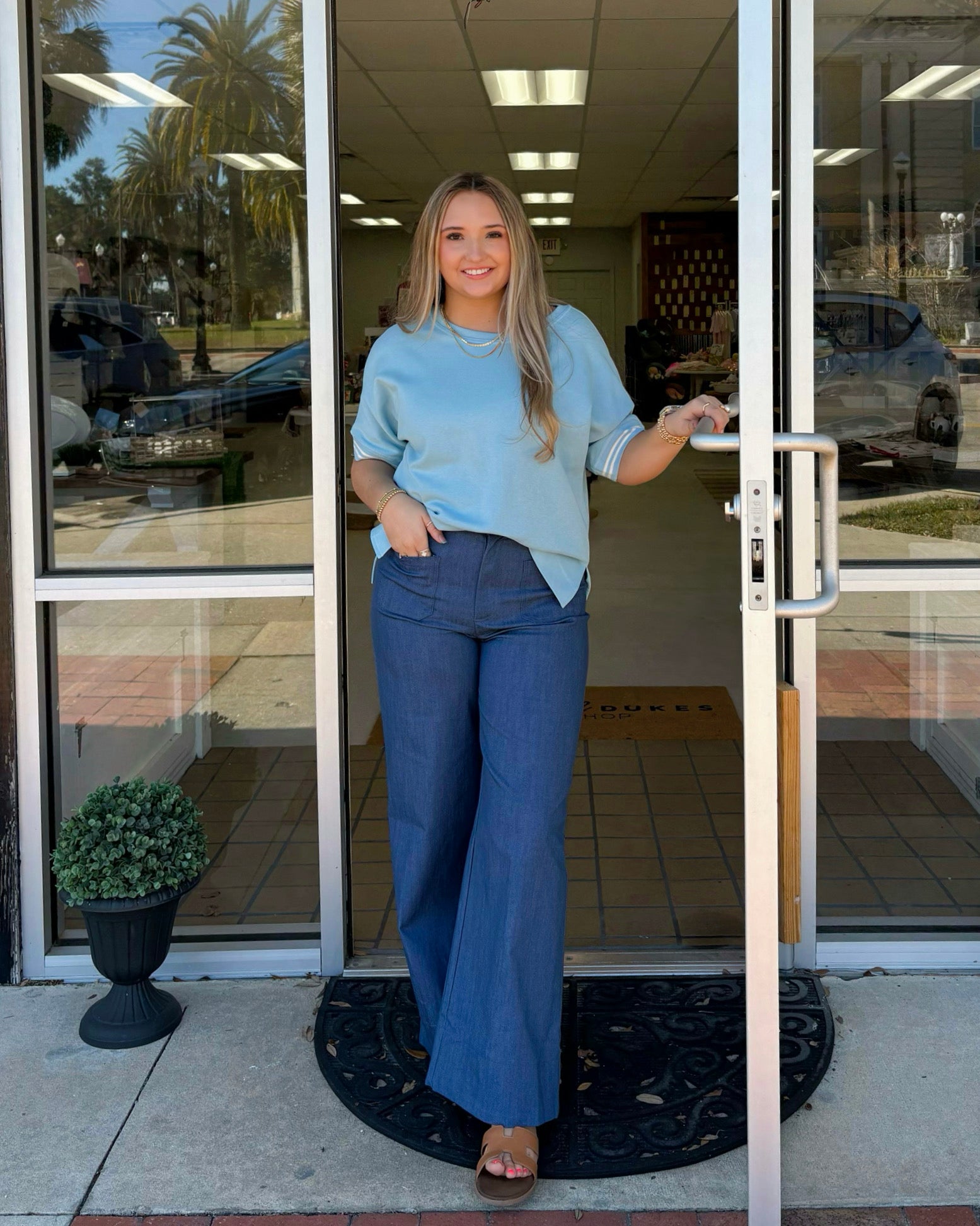 Round Neck Sleeve Trim Band Top Model Height: 5'8" Wearing Size Small