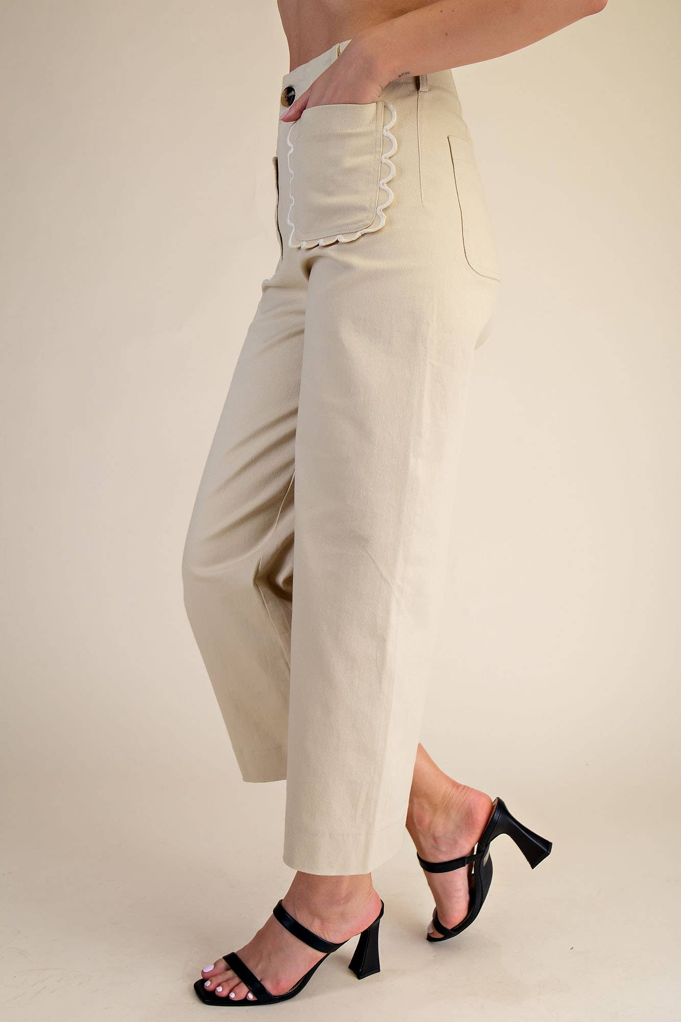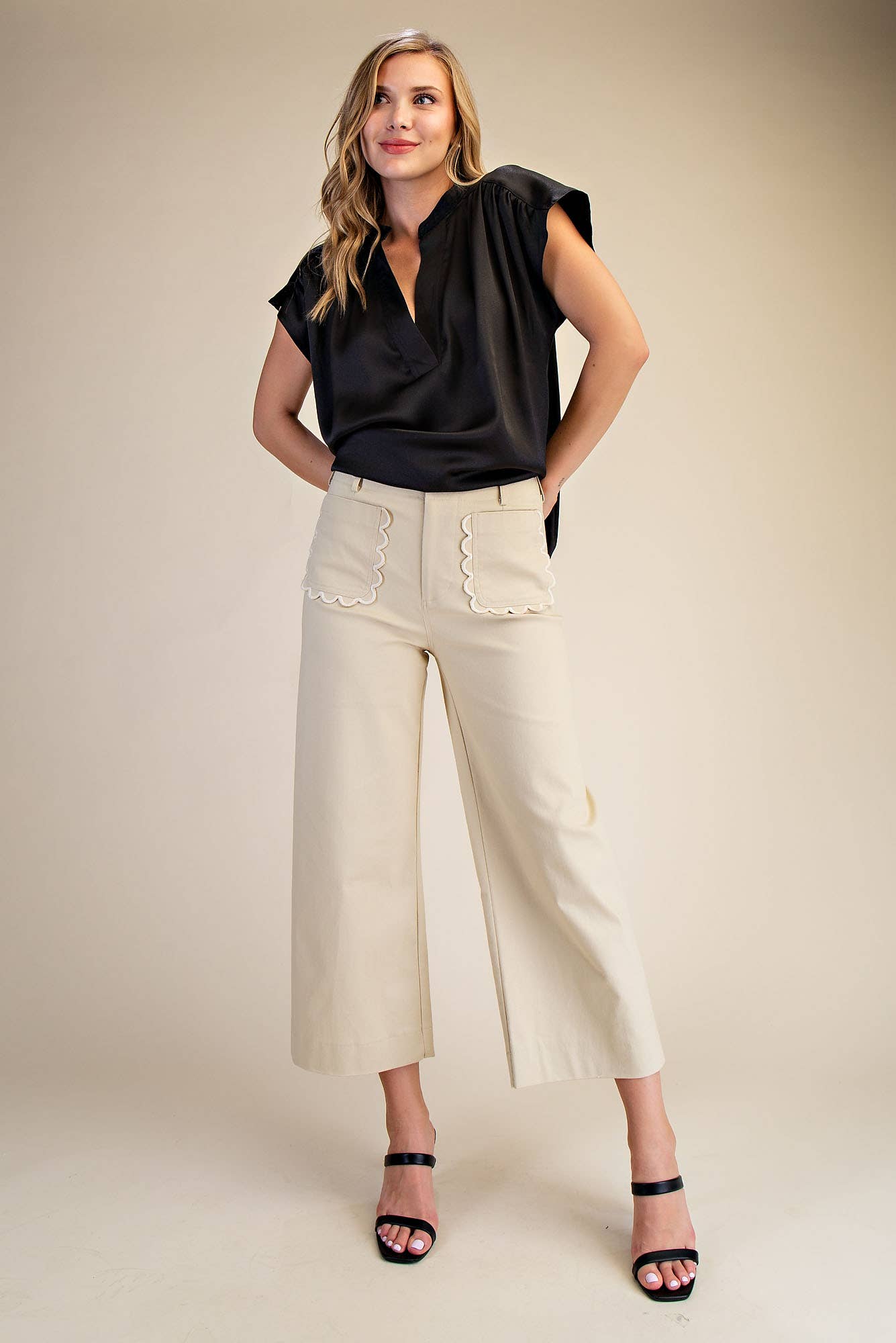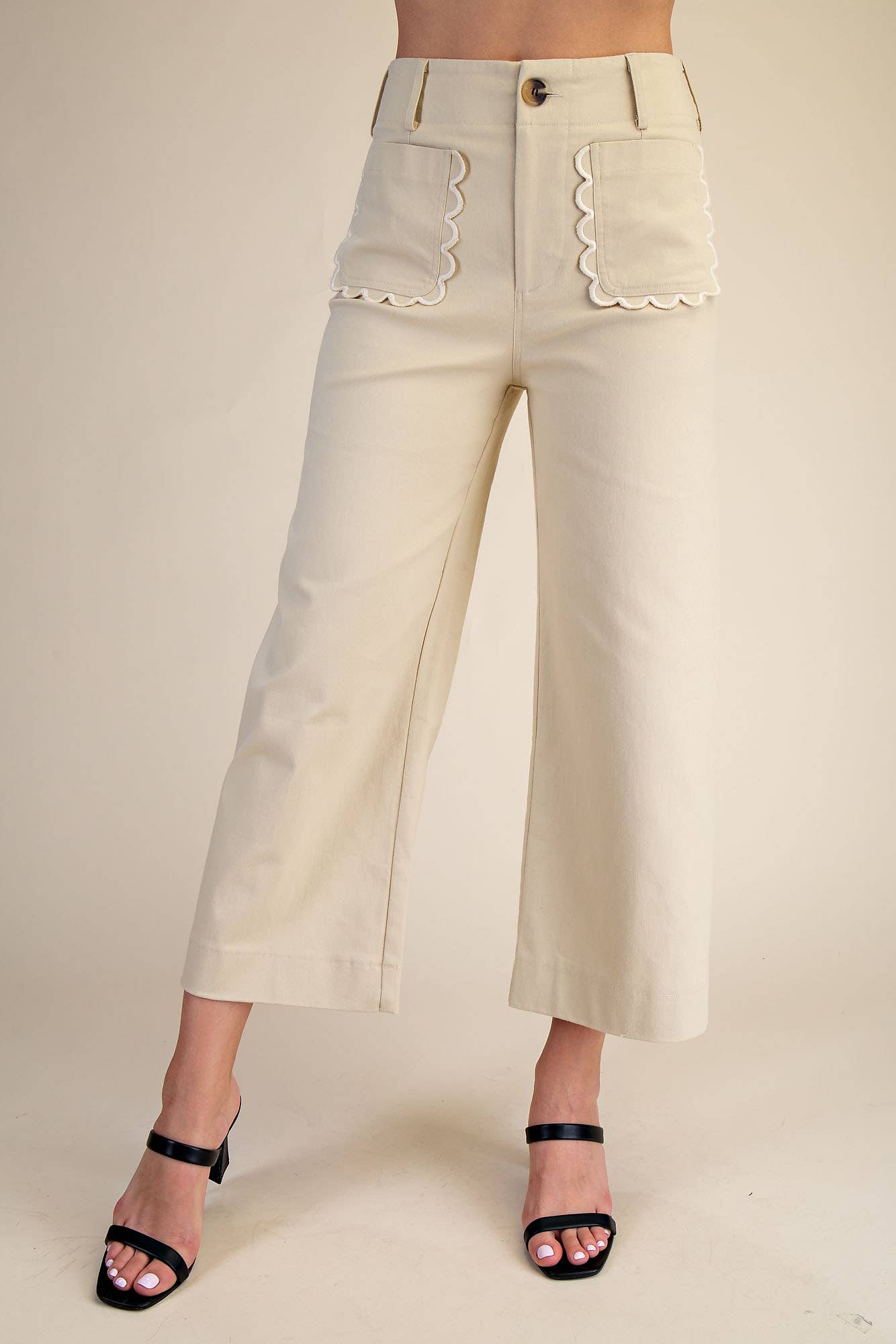 Colette Cropped Wide-Leg Scallop Pocket Detail Pants