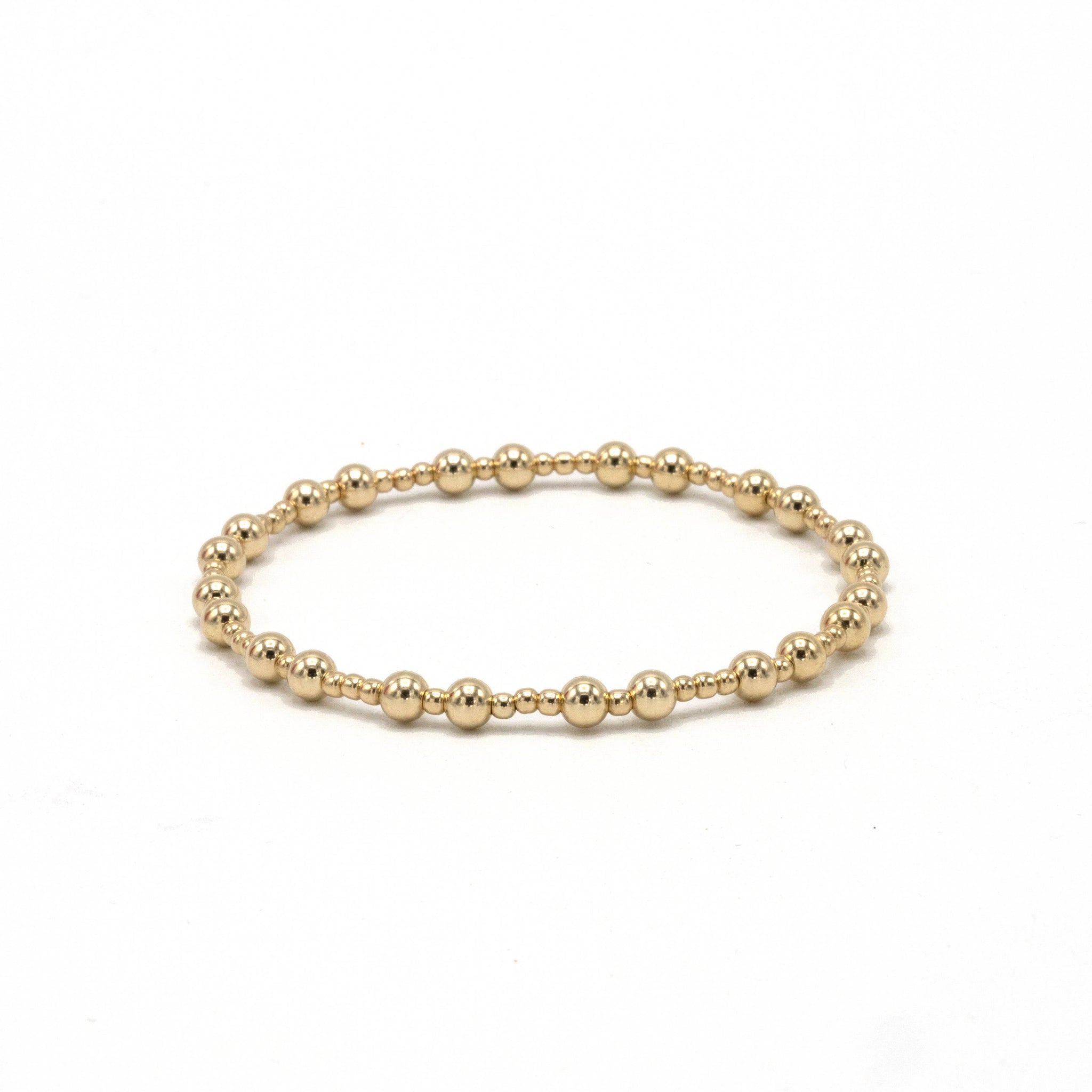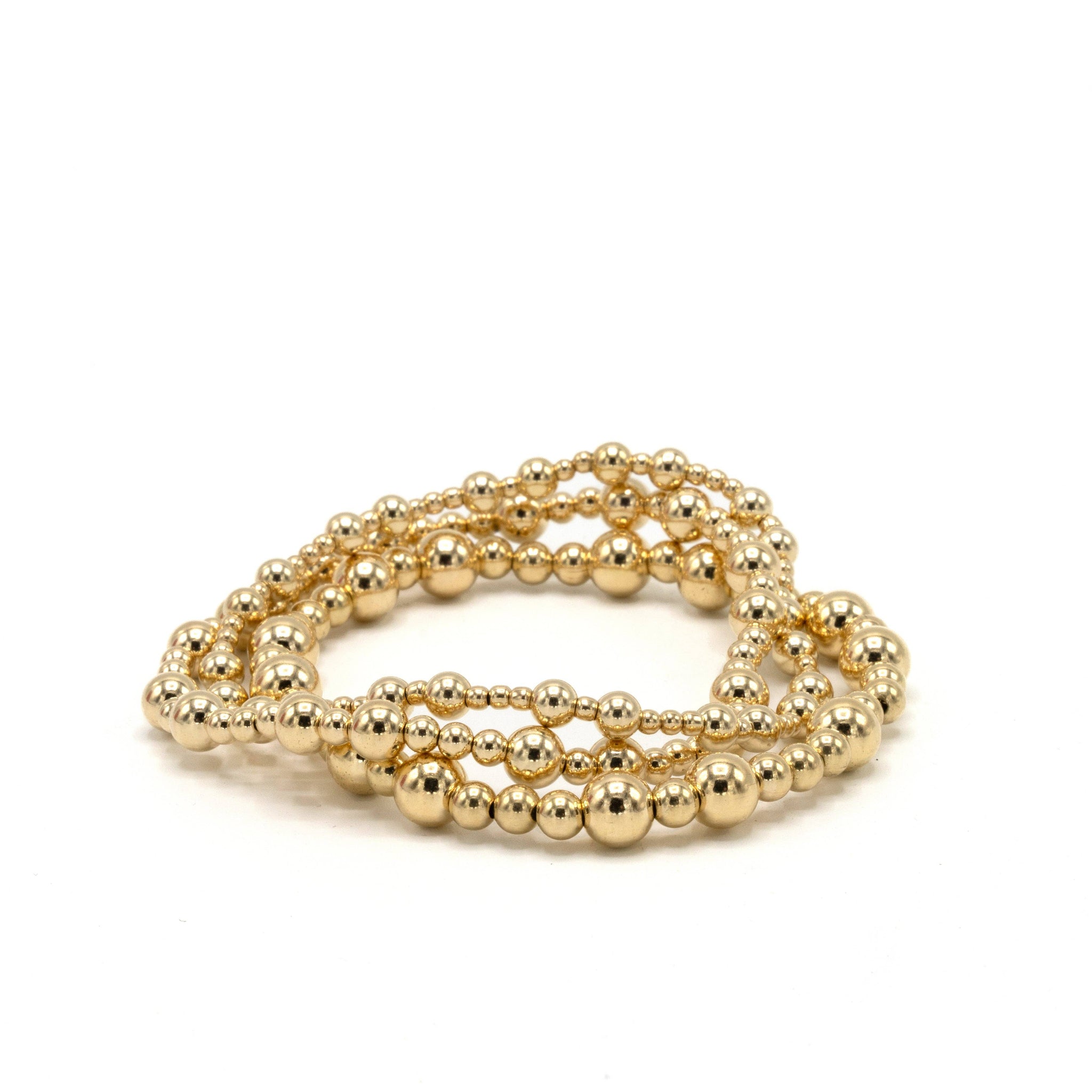 The Charleston bracelets, crafted with waterproof 14k gold-filled beads, are ideal for daily wear. They make thoughtful gifts for graduates, mothers, and friends. Available in two sizes and three elegant styles, they can be worn individually or stacked for a polished look.