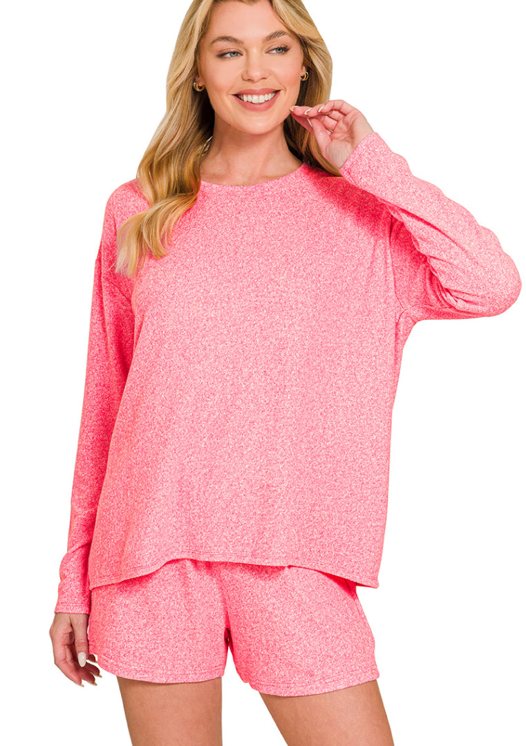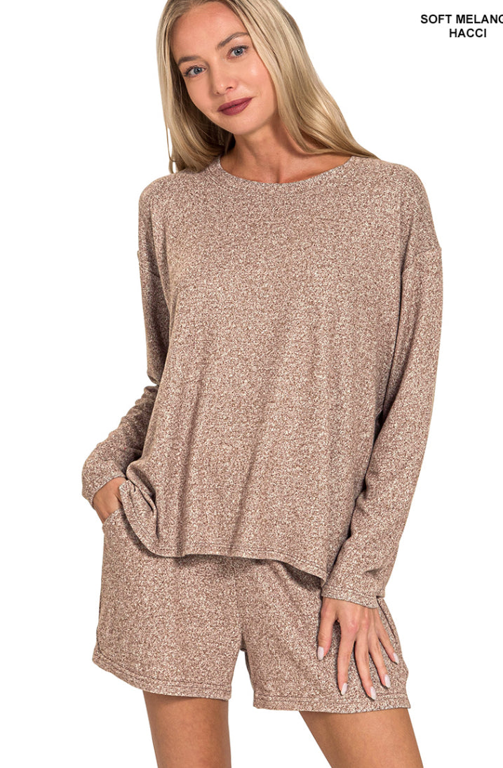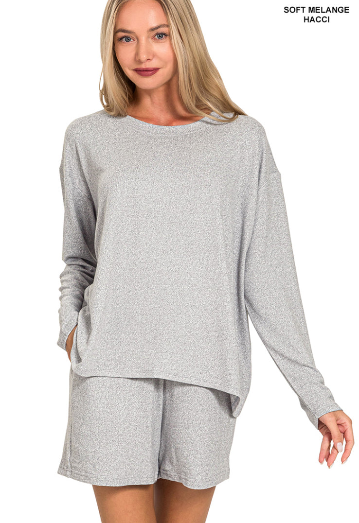 SOFT MELANGE LONG SLEEVE TEE & SHORTS SET
