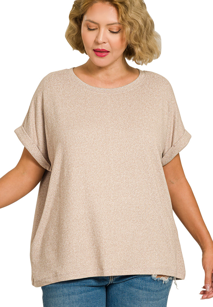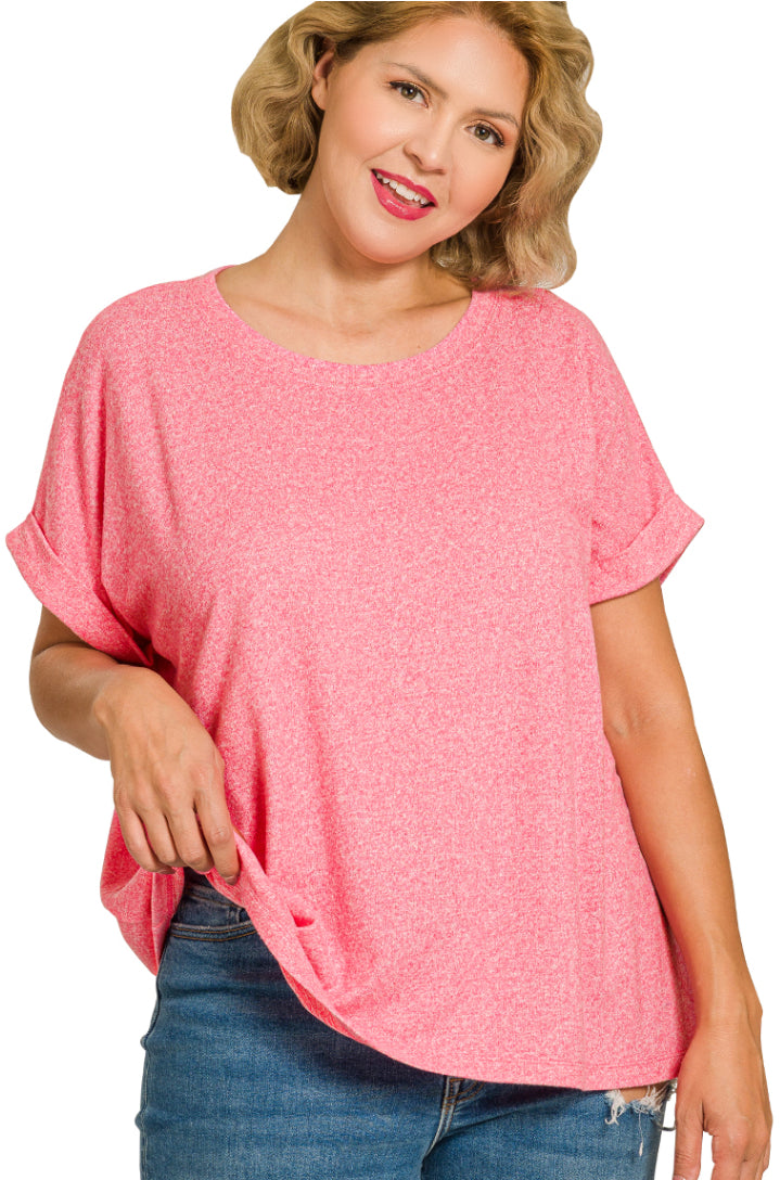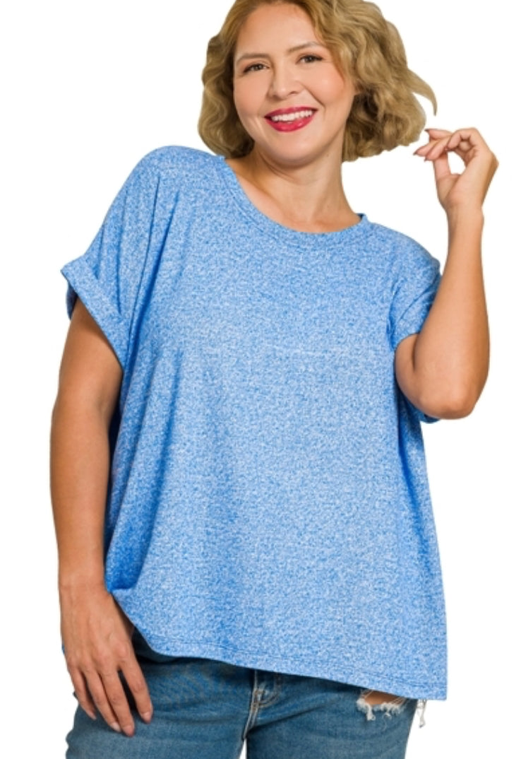 PLUS SOFT MELANGE SHORT SLEEVE ROUND NECK TOP
