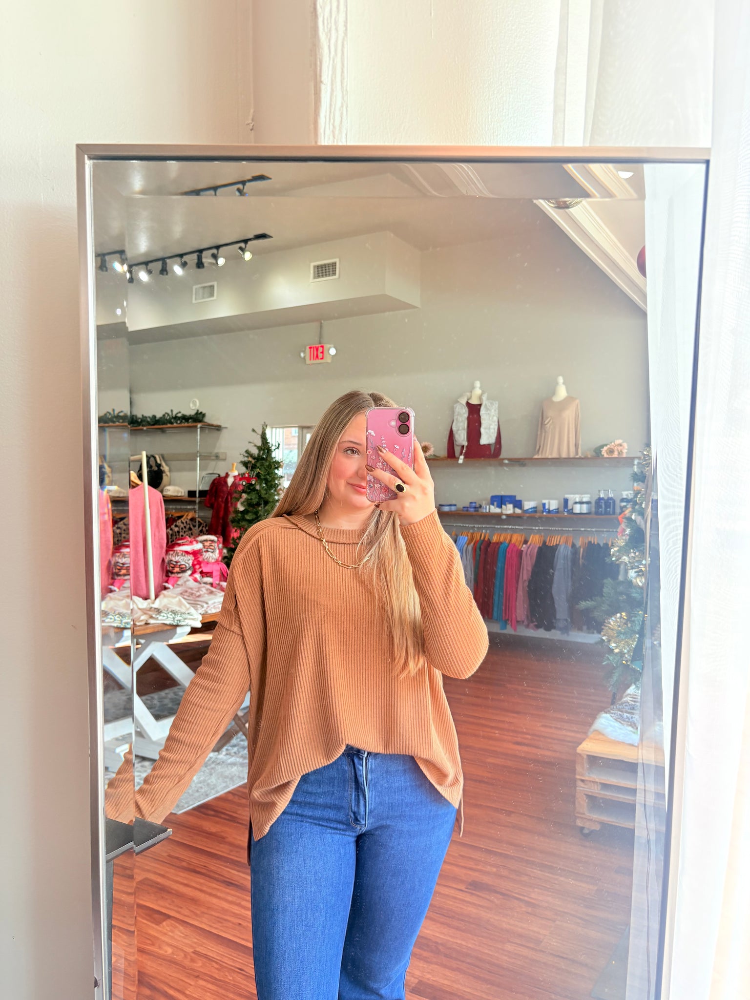 RIBBED DROP SHOULDER ROUND NECK SWEATER