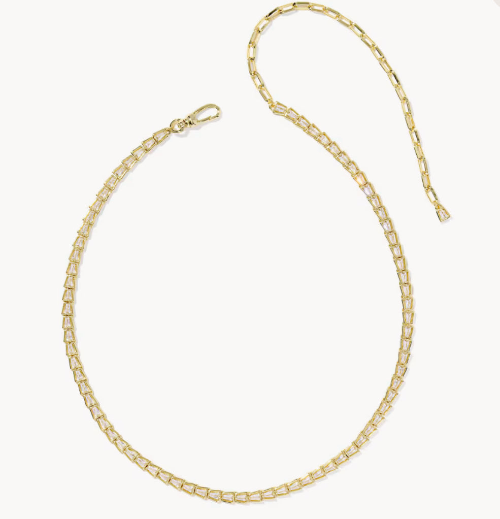 A jewelry classic, now with even more shine. Meet the Bella Silver Tennis Necklace, a stunning strand designed with cubic zirconia stones in a tapered baguette shape for dimensional sparkle. Wear this necklace solo for a chic and minimal look, or try layering it with your other favorite necklaces for a maximalist moment.